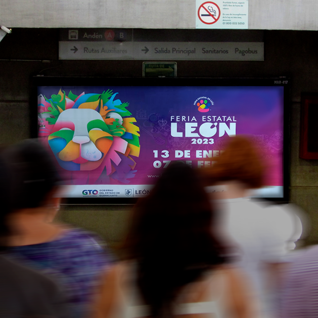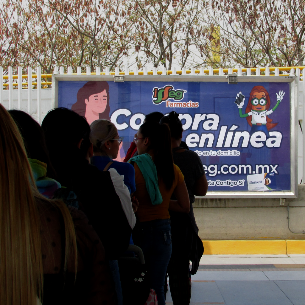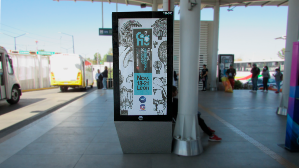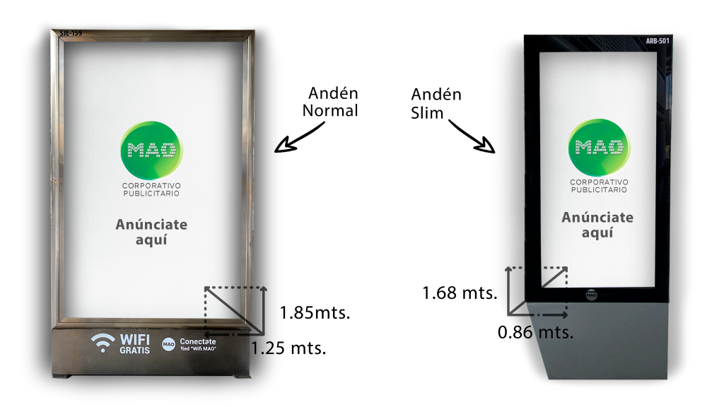 Mobiliario de formato vertical con diferentes dimensiones, ubicados en los andenes de las bases de transferencia de transporte público.