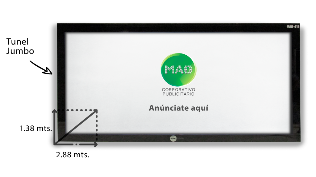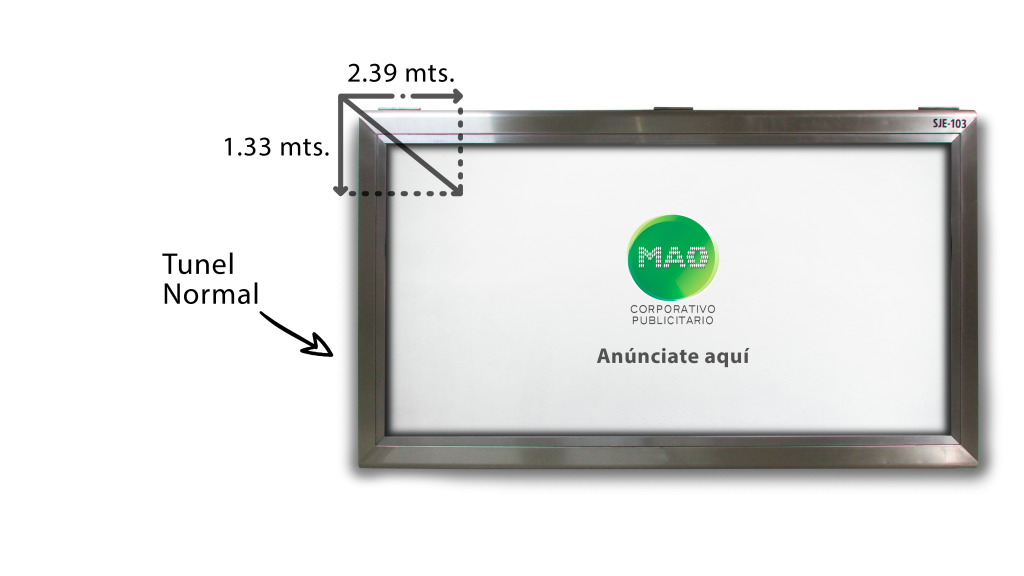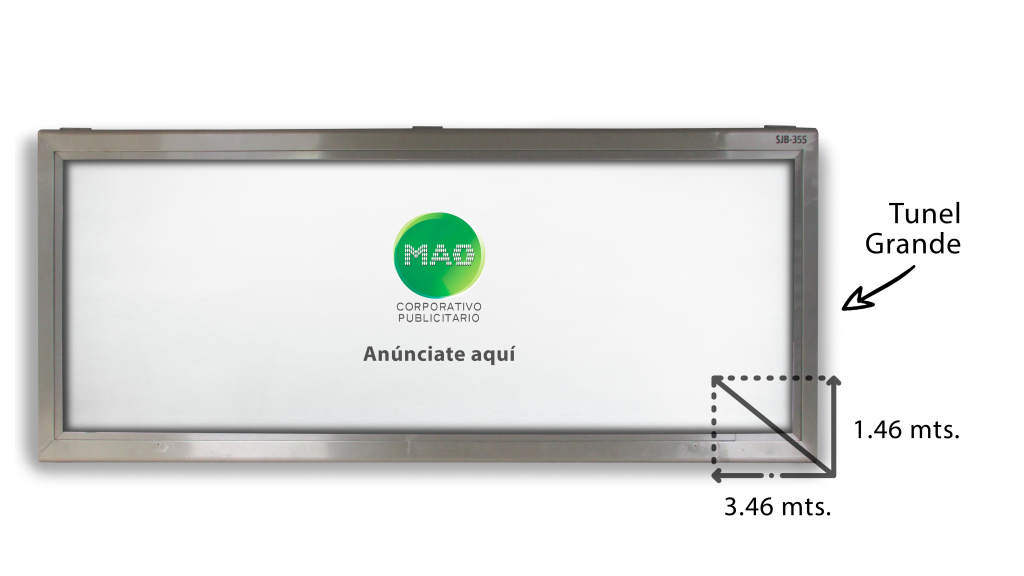Mobiliario de formato horizontal con diferentes dimensiones, ubicados en los muros de los túneles dentro de las bases de transferencia de transporte público.